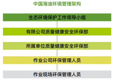 中国海油严格遵守业务所在国及地区环境管理相关的法律法规,制定覆盖总部及所属单位的《生态环境保护管理办法》和3个生态环境保护管理专项细则,此外还有《建设项目健康安全环保管理办法》《建设项目安全环保“三同时”管理细则》等10个办法和 8个细则,持续完善环境管理体系建设。公司已建立了规范化的环境管理机制,并在各所属单位设立专门的管理部门,推动落实环境管理保护工作。
