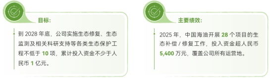 2025年,中国海油及各所属单位积极开展多项生态保护项目,促进运营地生物多样性的恢复。各所属单位积极投身于增殖放流、植被绿化和水土保持等各类生态修复工作,通过科学有效的生态修复手段,保障作业区域生态环境和生物资源可持续利用,彰显生态责任的担当。